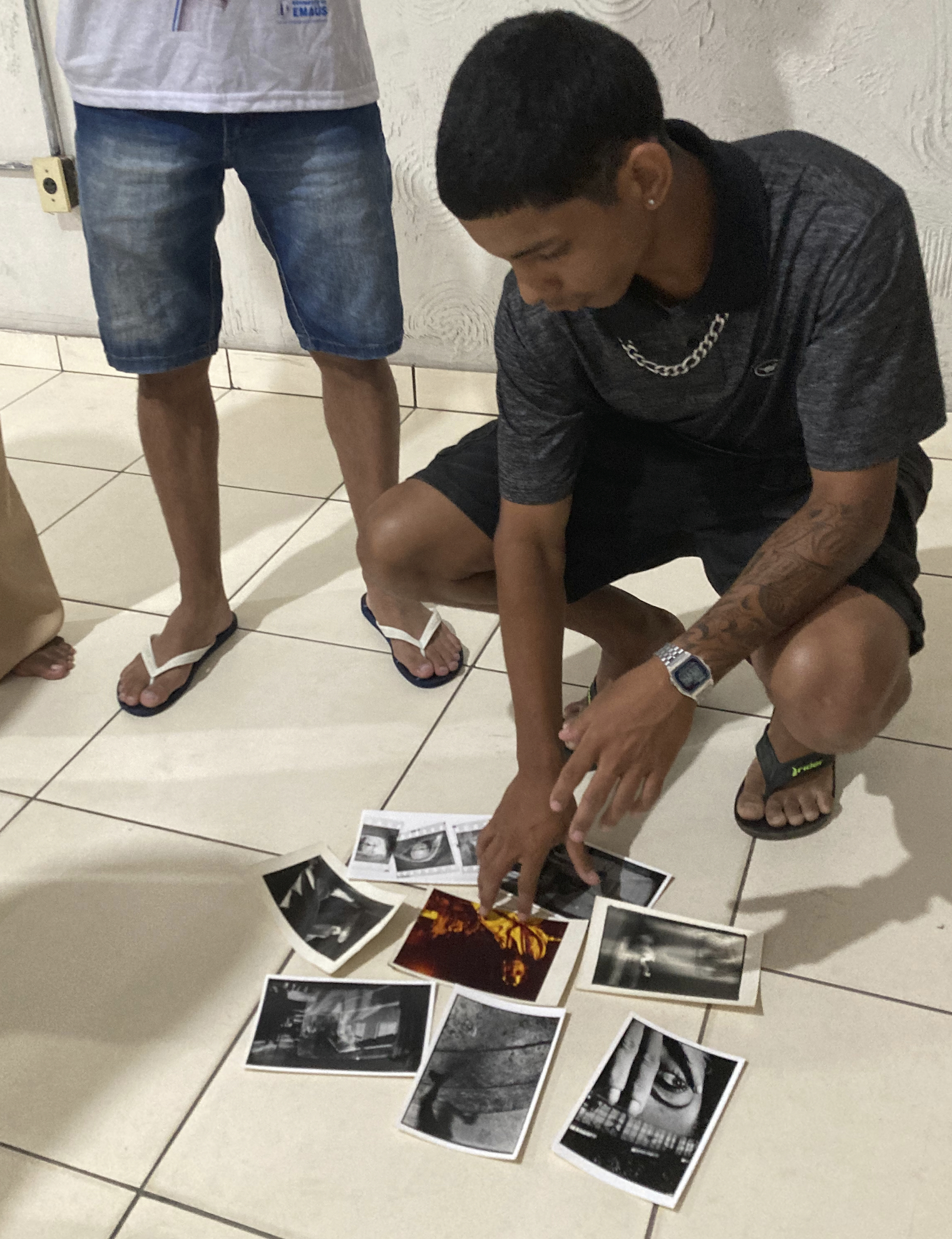 Esta atividade aborda conceitos e elementos básicos da linguagem fotográfica através de exercícios de seleção e edição de imagens. Os participantes são convidados a exercitar a seleção de um conjunto de imagens e organizá-las de maneira que expresse uma ideia, que tenham sentido. Trata-se de exercitar a sintaxe de colocação de imagens desvelando qualidades conforme a disposição entre elas, seja num mural, numa parede de galeria ou numa publicação impressa ou virtual. Pode-se expandir esse exercício de par com palavras e/ou textos.